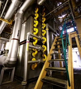 カフェスチルは1830年頃にアイルランド人のイーニアス・コフィー(Aeneas Coffey)によって発明された非常に古いタイプの連続式蒸留機です。正しい発音ではコフィースチルなのですが、ニッカウヰスキー創業者の竹鶴政孝が「カフェ」と発音していたことから、カフェが定着。現代の最新式では蒸留機の蒸溜塔は4つあるのが主流ですが、旧式であるカフェ式では「モロミ塔」と「精溜塔」の二つのみ。