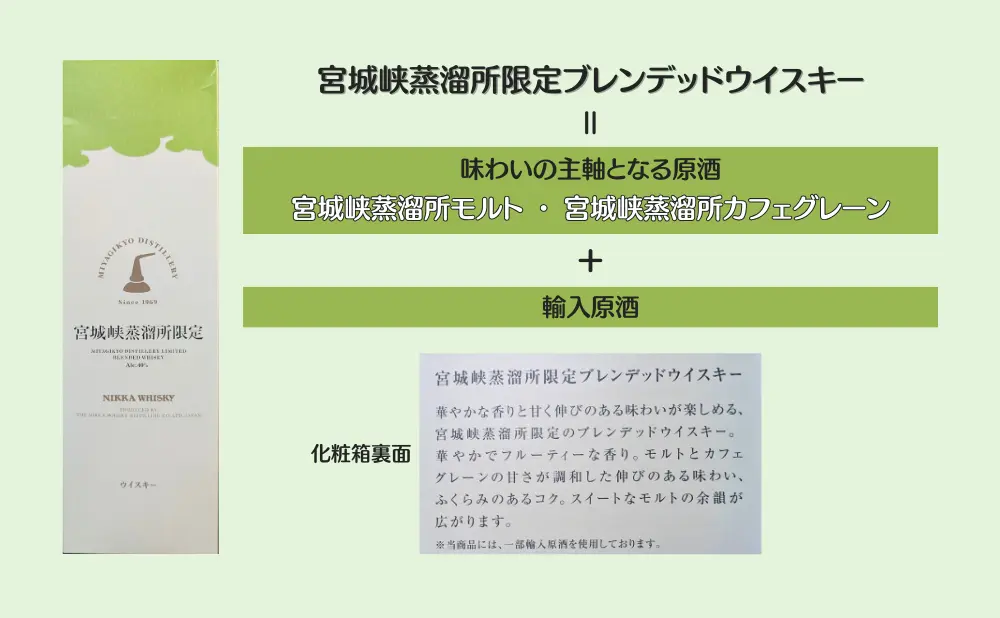 このウイスキーは、宮城峡蒸溜所モルトとカフェグレーンを主軸とし、一部輸入原酒もブレンドしています。シングルモルト宮城峡が持つ華やかさを活かしつつ、ブレンデッドならではの「飲みやすさ」を追求した商品設計となっています。
